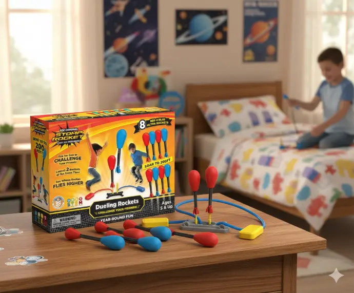Experience endless fun with this backyard rocket set! It can reach heights of up to 200 feet and includes 8 rockets, along with a dueling stand for multiplayer excitement. (Read more...)