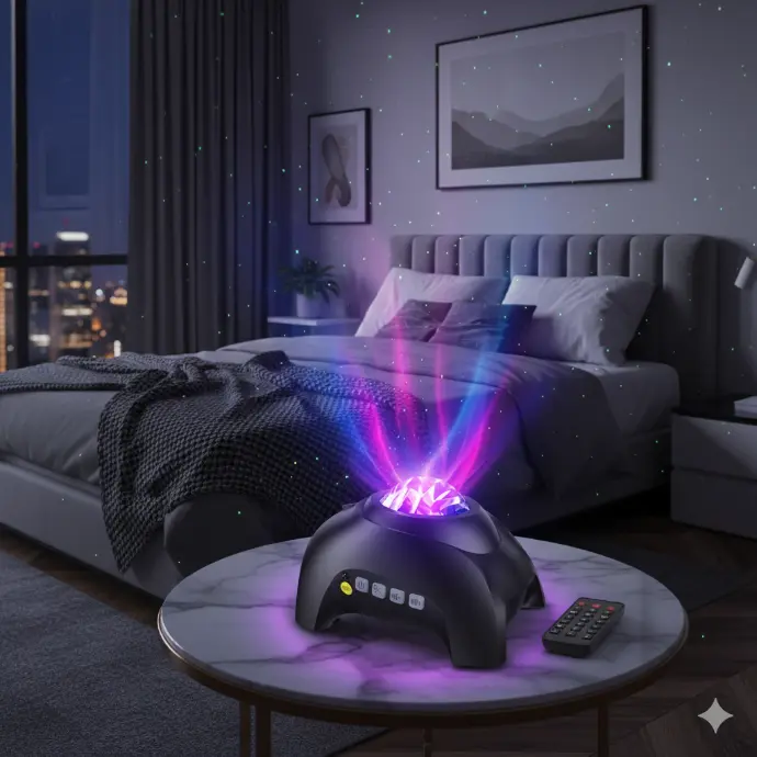 Transform any room into a magical escape with this galaxy projector! It features 33 light effects, Bluetooth music, and white noise, making it ideal for children's bedrooms, parties, or relaxation. (Read more...)